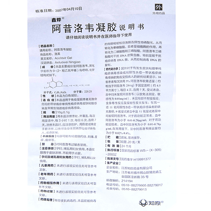 洛芙 阿昔洛韦凝胶 10g*1支/盒