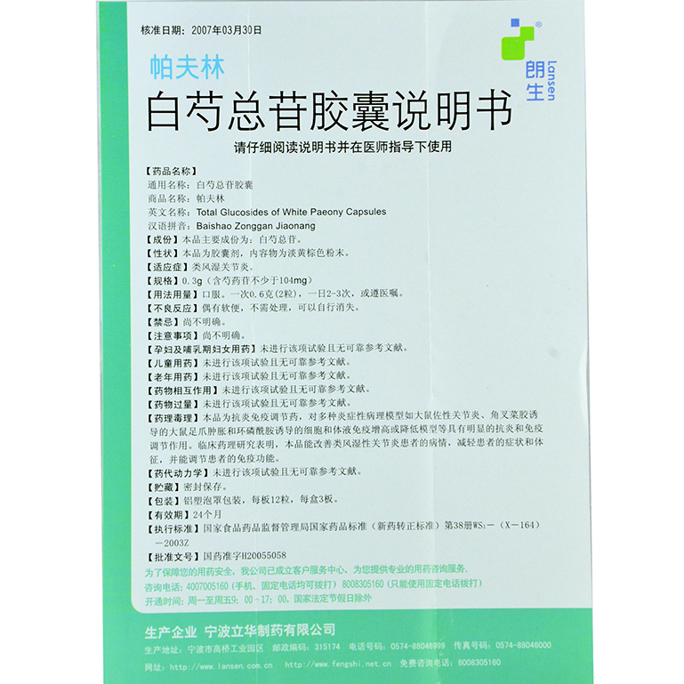 帕夫林白芍总苷胶囊36粒