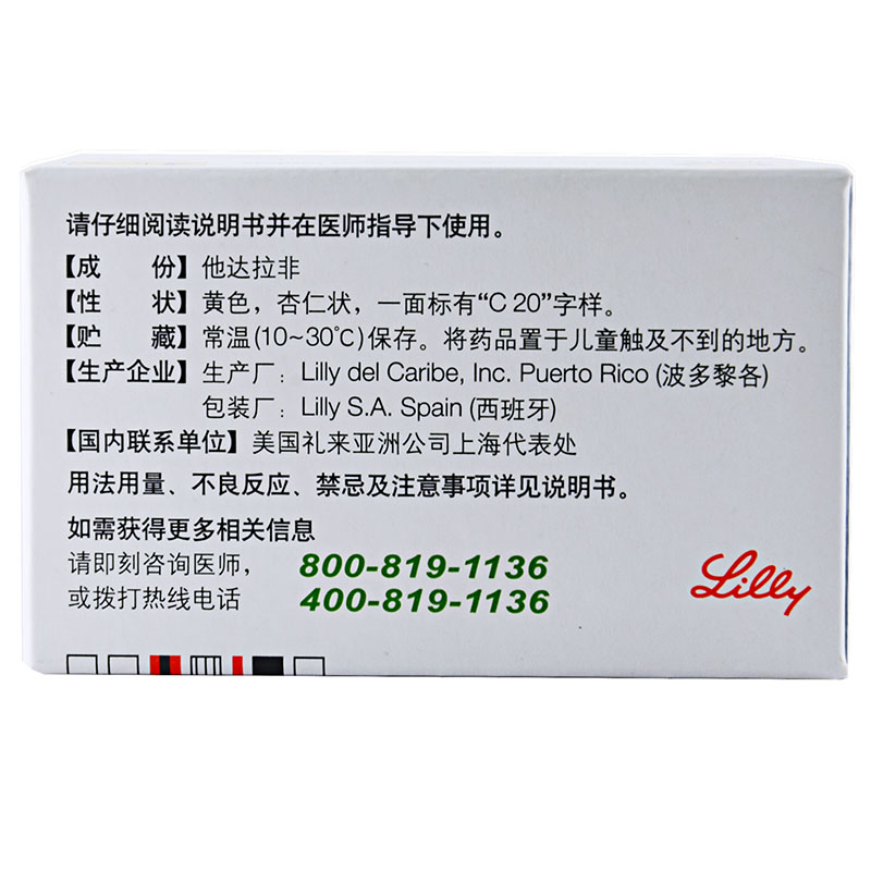 希爱力/Clalis 他达拉非片 20mg*4片/盒(此货号不要下单,直接搜1347254下单)