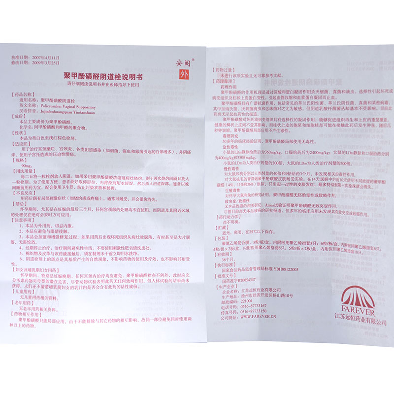安阁 聚甲酚磺醛阴道栓90mg*6粒
