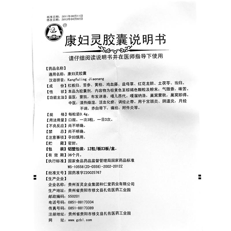 百灵鸟 康妇灵胶囊 0.4g*36粒/盒