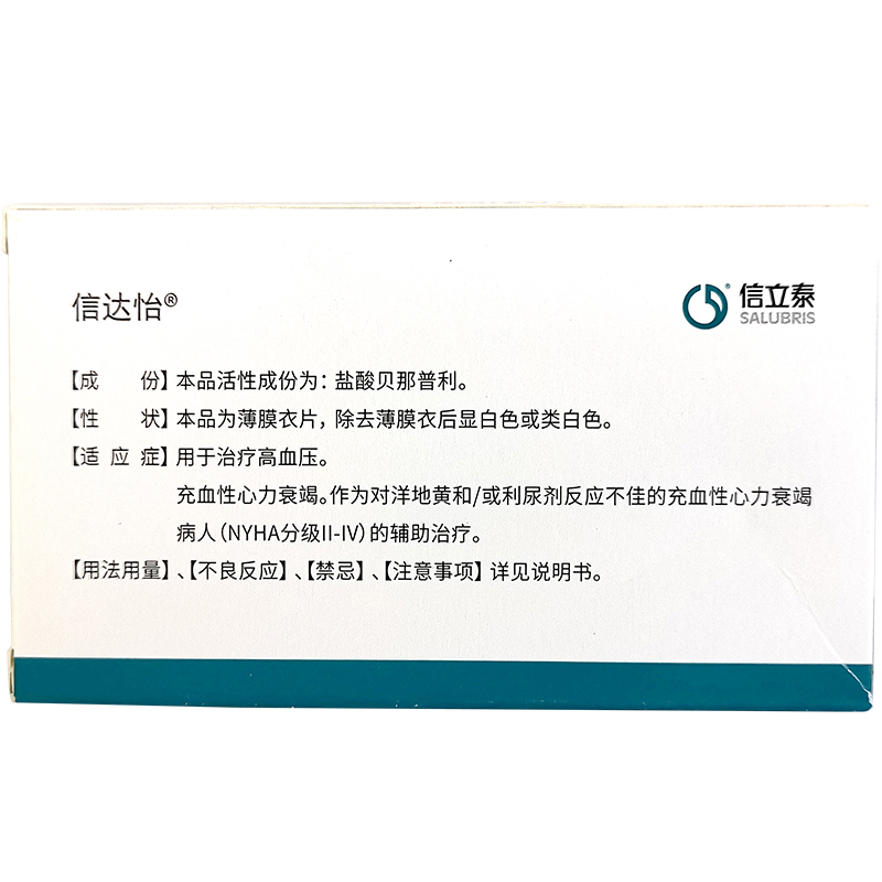 信达怡 盐酸贝那普利片 10mg*14片/盒