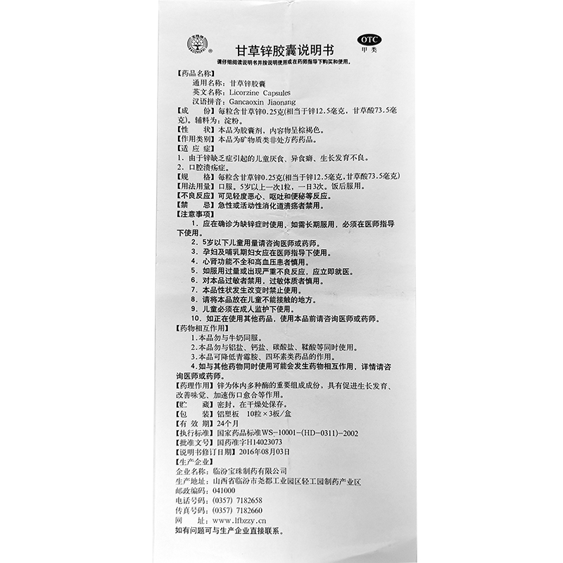 厂家名称:临汾宝珠制药有限公司