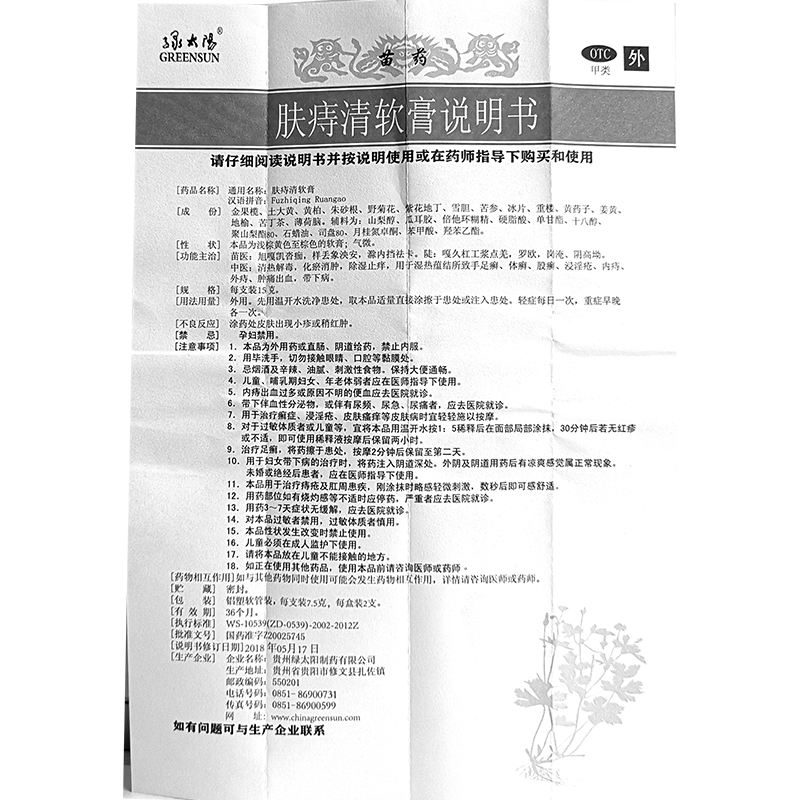 厂家名称:贵州绿太阳制药有限公司