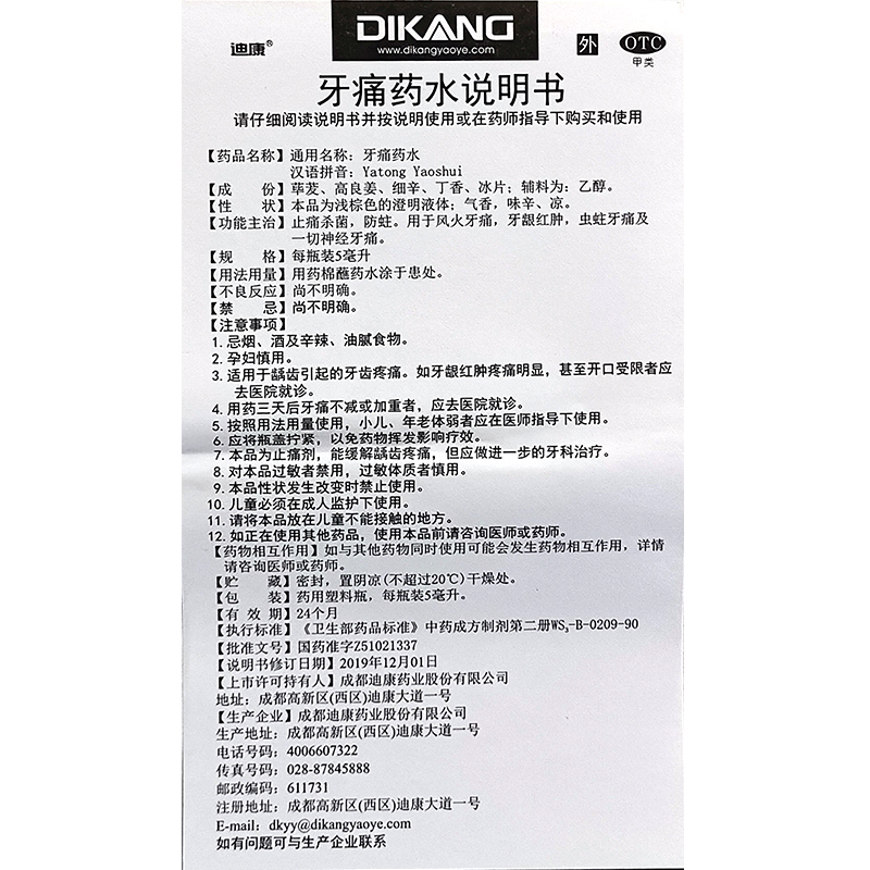 迪康 牙痛药水5毫升