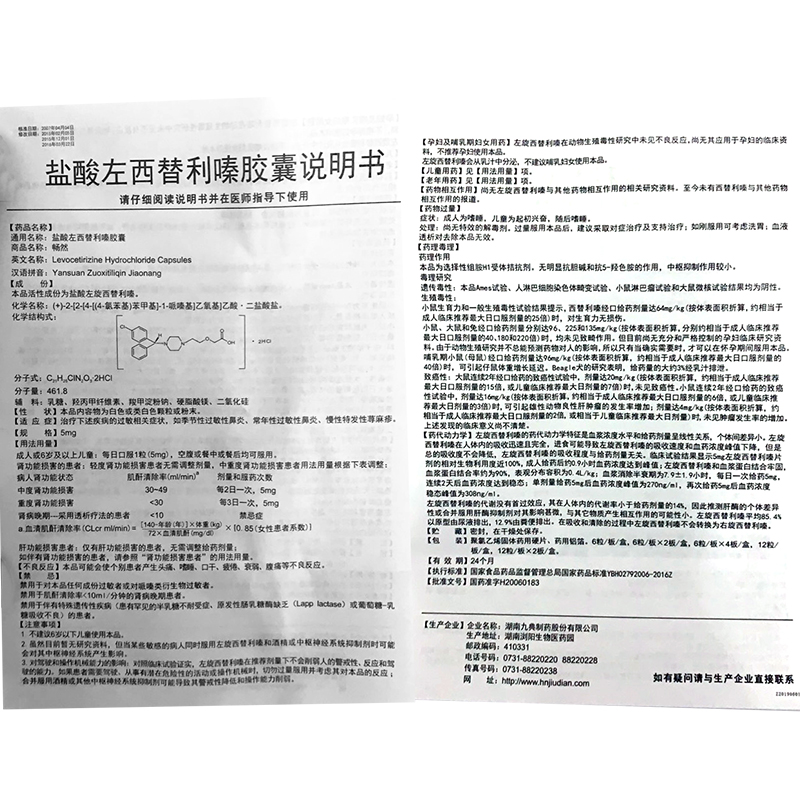 盐酸左西替利嗪胶囊(畅然)5毫克*12粒