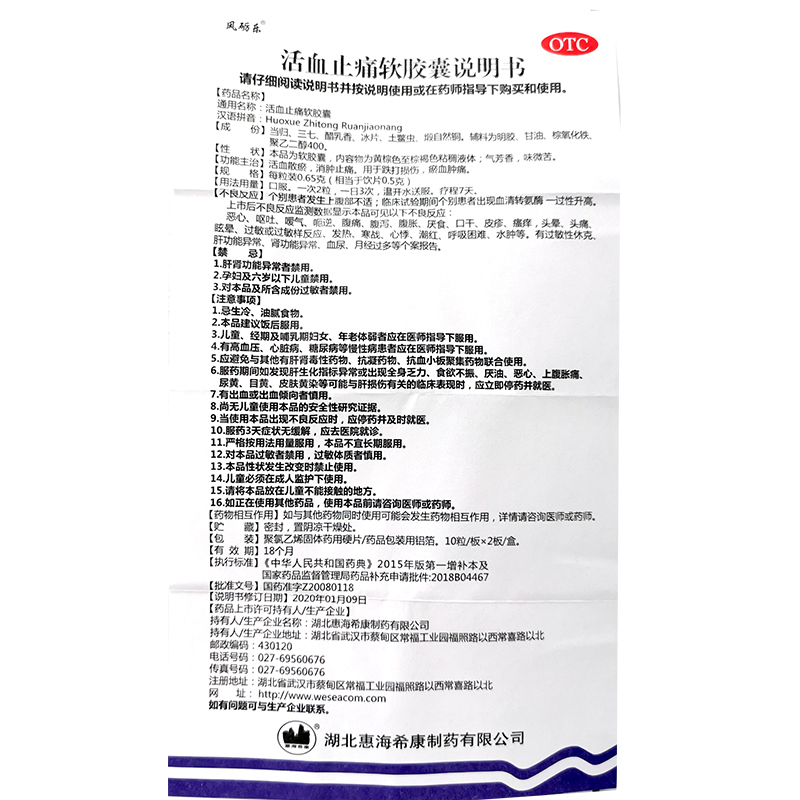 活血止痛软胶囊0.65克*10粒*2板