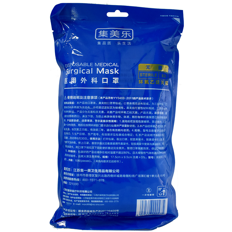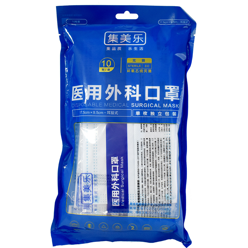 集美乐 医用外科口罩10片/耳挂式/无菌/独立包装