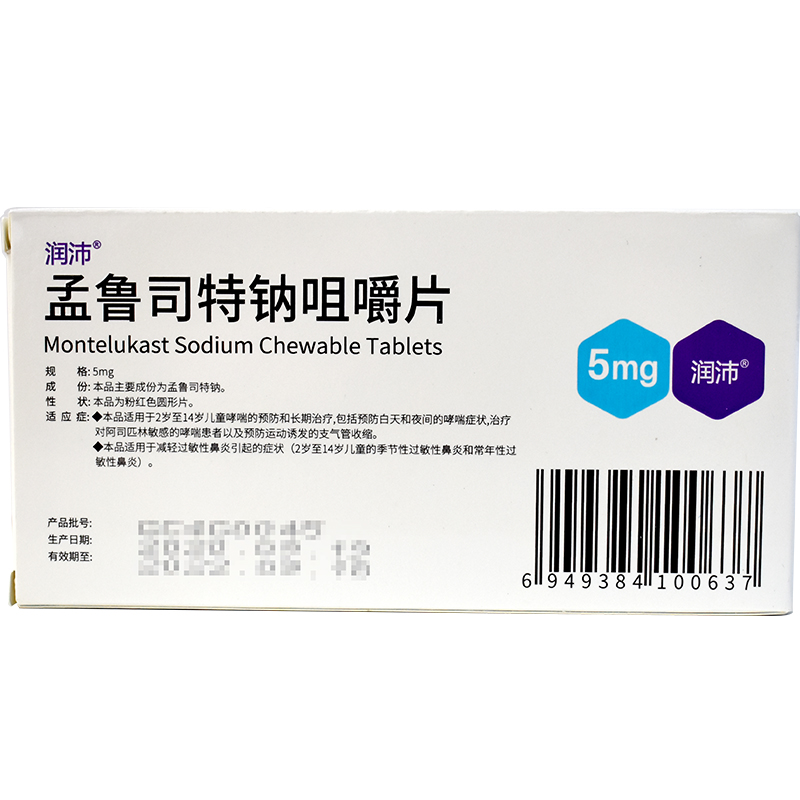 孟鲁司特钠咀嚼片5毫克*14片(儿童)