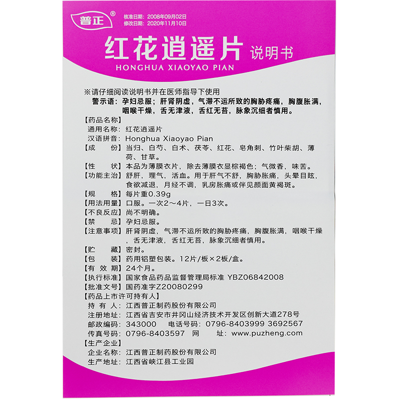 普正 红花逍遥片0.39克*12片*2板