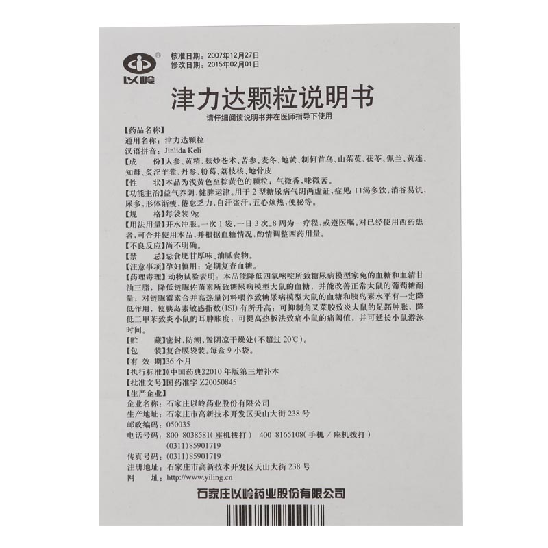 厂家名称:石家庄以岭药业股份有限公司