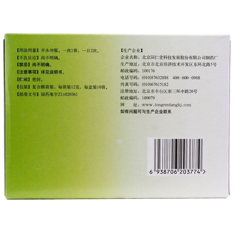 厂家名称:北京同仁堂科技发展股份有限公司制药厂