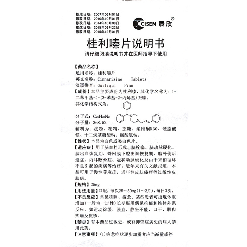 辰欣 桂利嗪片25毫克*100片