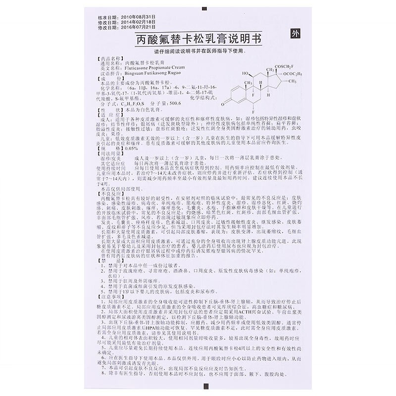 丙酸氟替卡松乳膏15克/0.05%