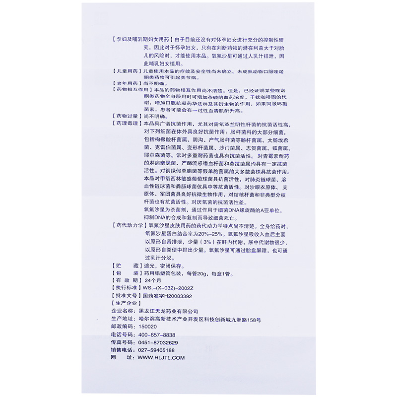 鑫烨 氧氟沙星凝胶 20g*1支/盒 皮肤软组织感染毛囊炎疖肿脓疱疮外伤湿疹感染