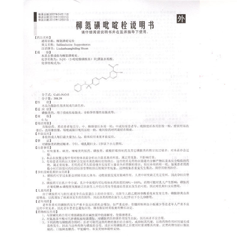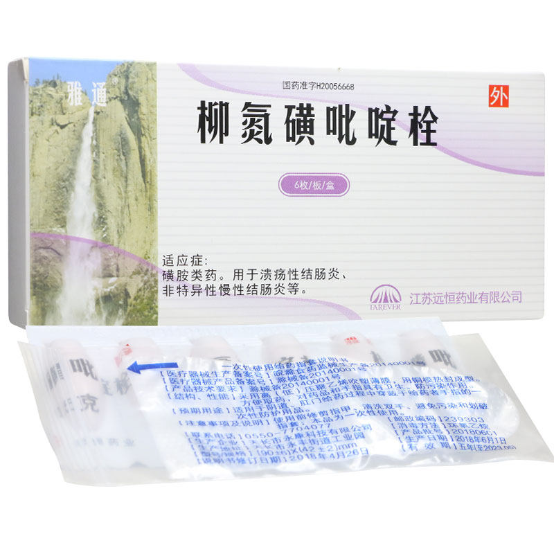 雅通 柳氮磺吡啶栓 0.5g*6枚/盒溃疡性结肠炎非特异性慢性结肠炎