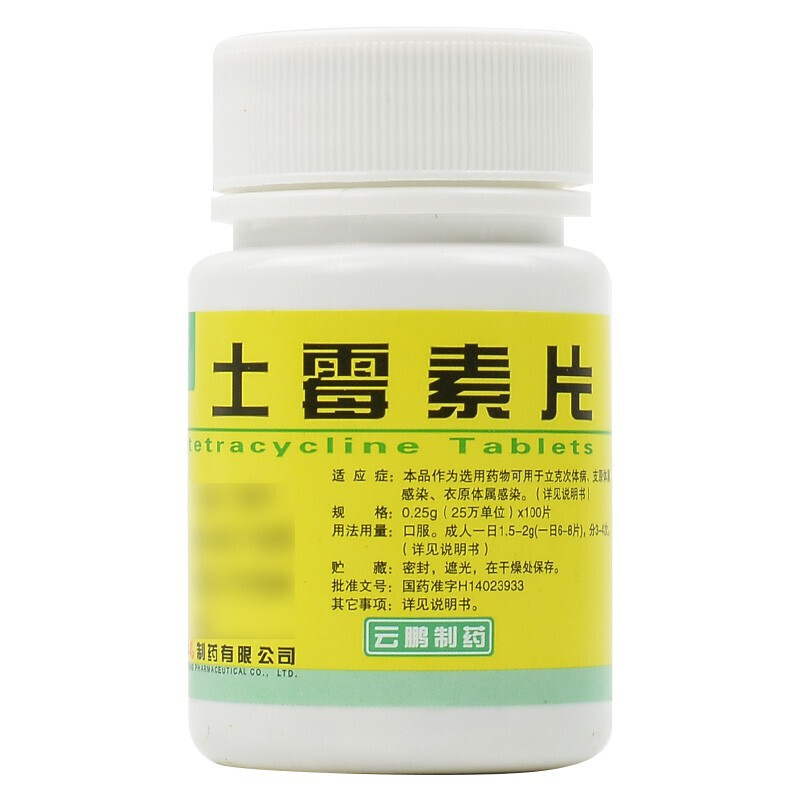云鹏 土霉素片 0.25g*100片*1瓶支原体属感染淋病衣原体感染性病非特异性尿道炎输卵管炎宫颈炎沙眼霍乱