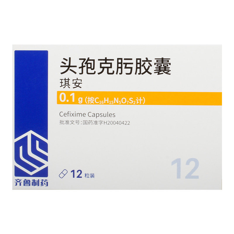 齐鲁 琪安 头孢克肟胶囊 0.1g*12粒/盒支气管炎 肺炎 膀胱炎 中耳炎 鼻窦炎 胆囊炎