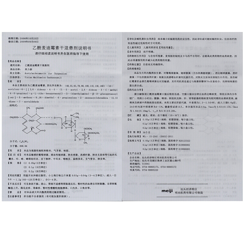 厂家名称:汕头经济特区明治医药有限公司