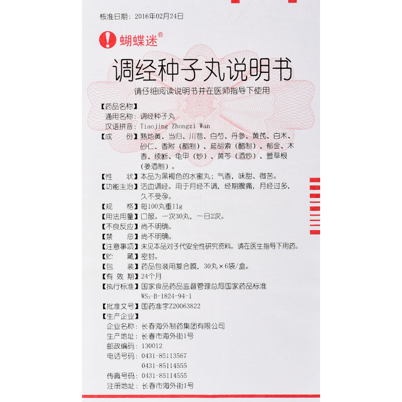 蝴蝶迷 调经种子丸0.11g*180丸/盒 活血调经用于月经不调经期腹痛月经过多久不受孕