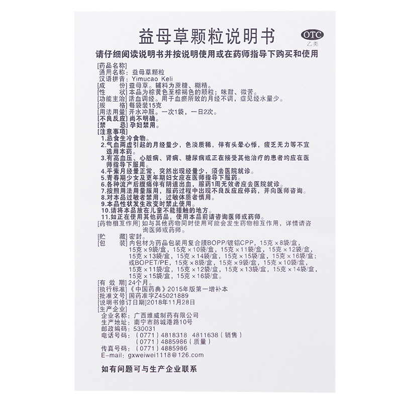 维威益母草颗粒15g*16袋 活血调经月经不调药