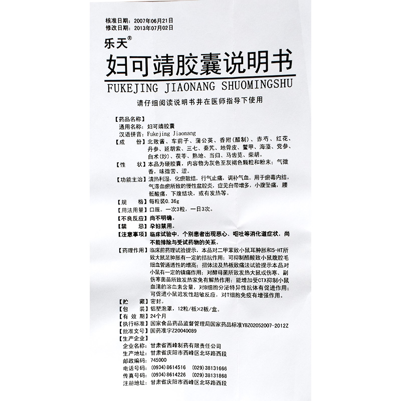 Lotte/乐天妇可靖胶囊0.36g*24粒/盒 慢性盆腔炎小腹坠痛调补气血白带增多腰骶酸痛下腹结块化瘀