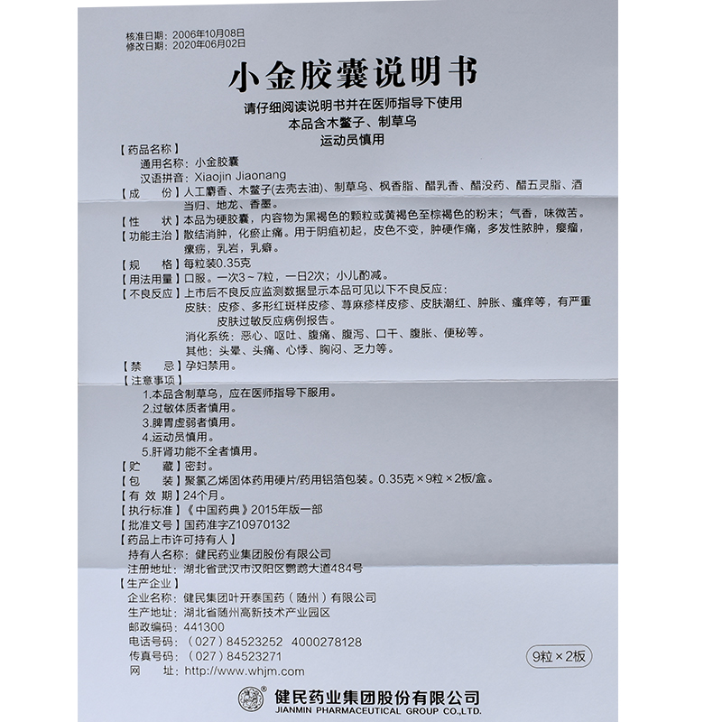 健民集团 小金胶囊0.35g*18粒/盒 散结消肿 化瘀止痛 用于阴疽初起皮色不变肿硬作痛多发性脓肿瘿瘤瘰疬乳岩