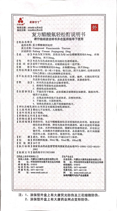 三花大唐 复方醋酸氟轻松酊 100ml*1瓶/盒神经性皮炎银屑病