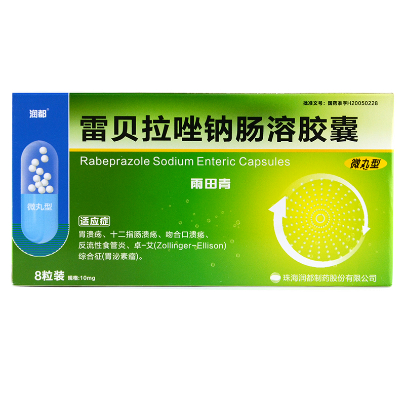 润都 雨田青 雷贝拉唑钠肠溶胶囊 10mg*8粒/盒