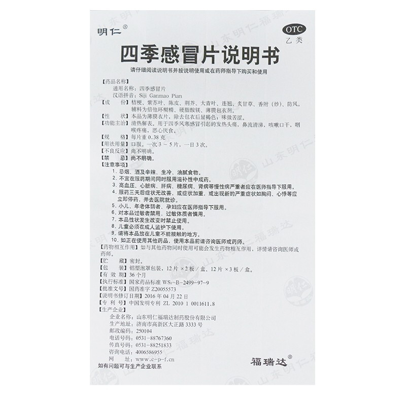 明仁四季感冒片0.48克*24片