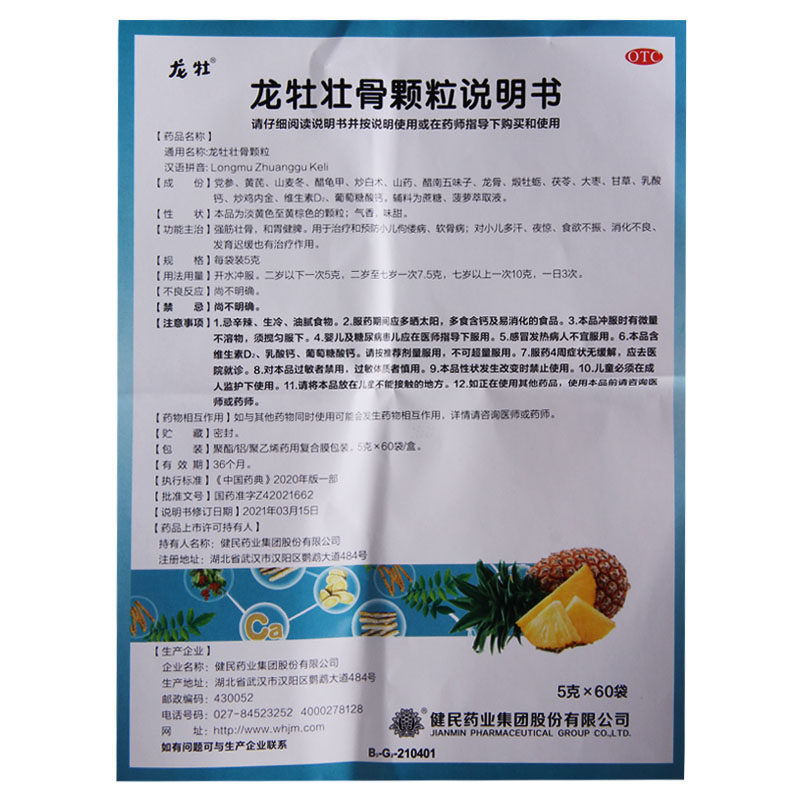 龙牡 龙牡壮骨颗粒 5g*60袋/盒治疗和预防小儿佝偻病发育迟缓