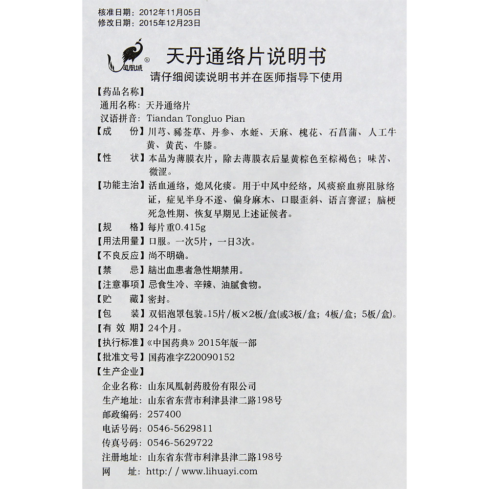 凤凰城 天丹通络片 0.415g*60片/盒