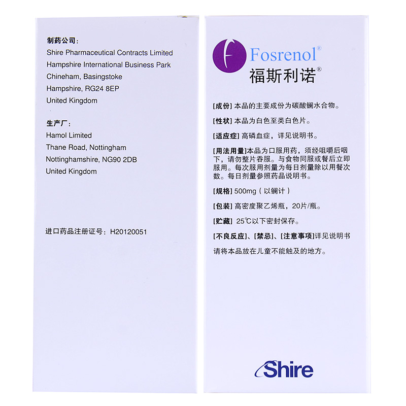 福斯利诺 碳酸镧咀嚼片500mg*20片*1瓶/盒