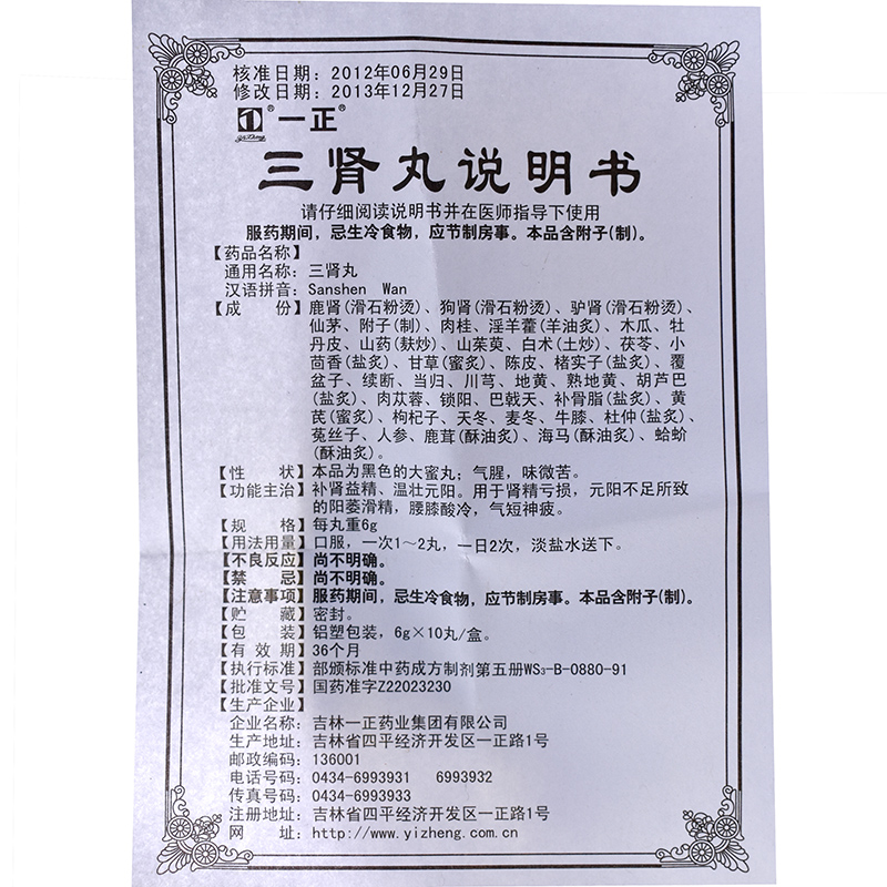 一正 三肾丸 6g*10丸*4小盒
