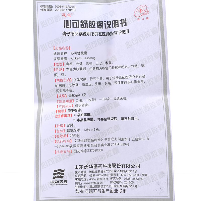 沃华 心可舒胶囊