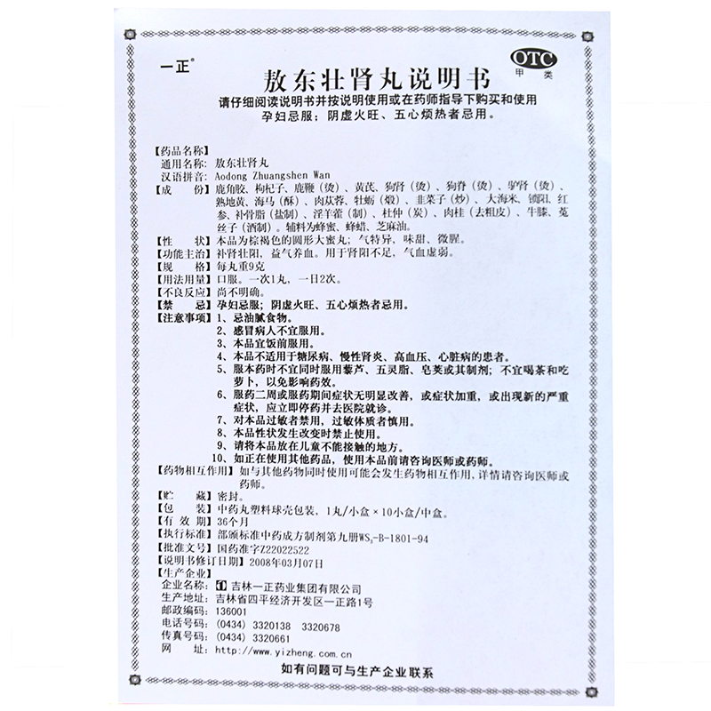 一正敖东壮肾丸 1丸10小盒
