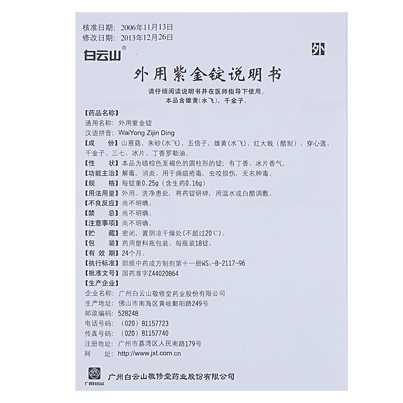 厂家名称:广州白云山敬修堂药业股份有限公司