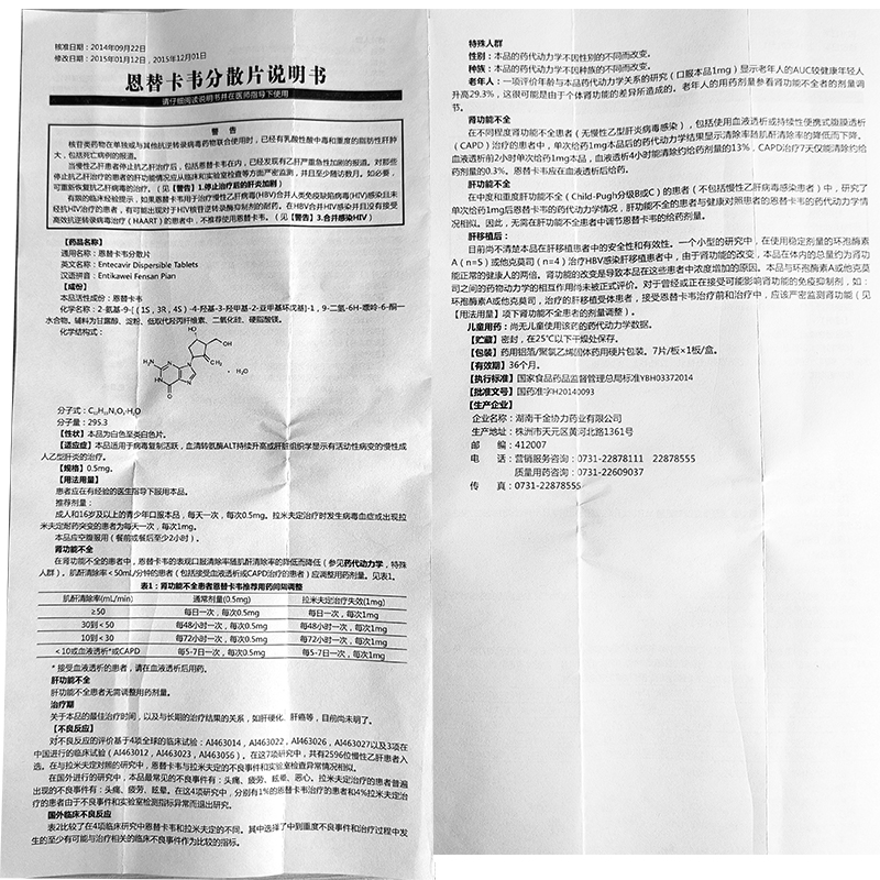 艾普丁 恩替卡韦分散片 0.5mg*7片/盒