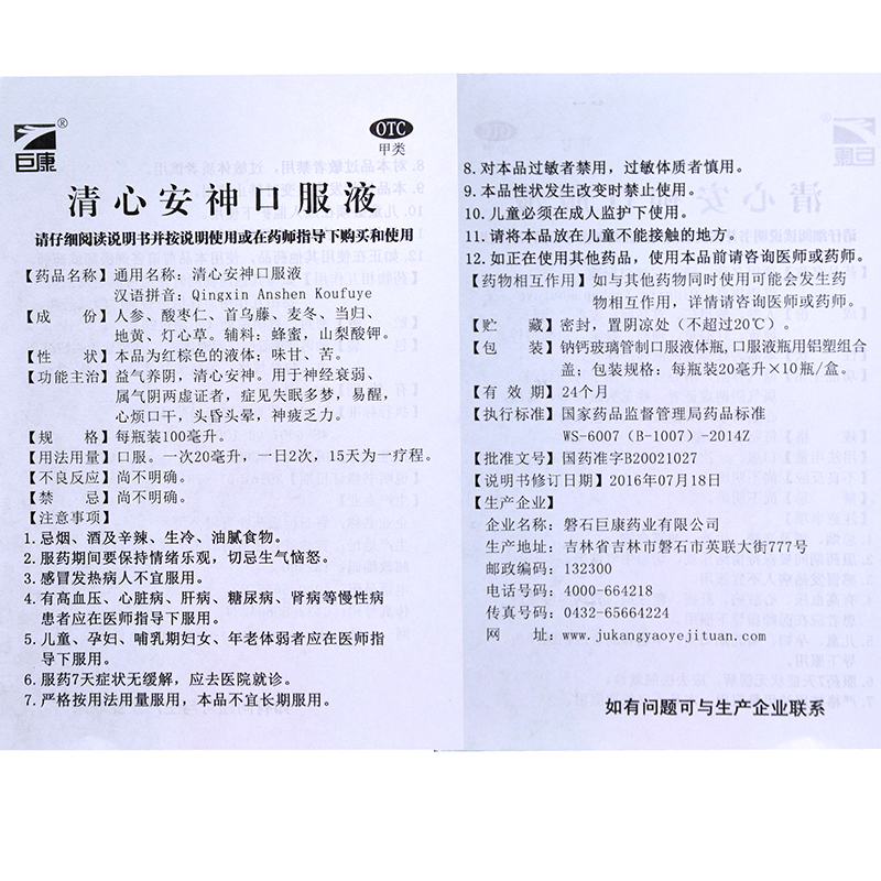 巨康清心安神口服液10支