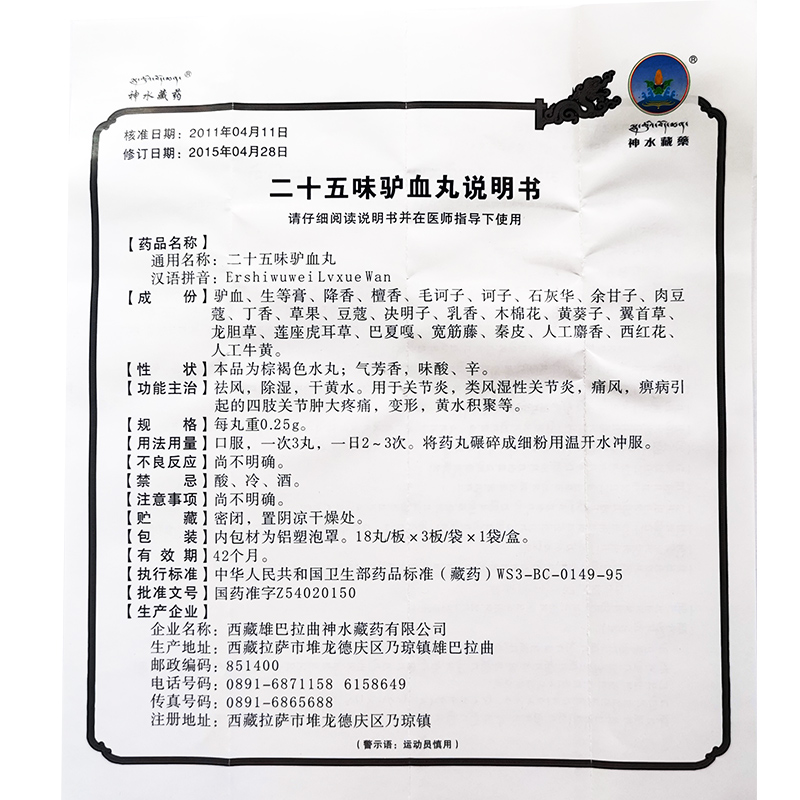 神水藏药二十五味驴血丸 0.25g*54丸