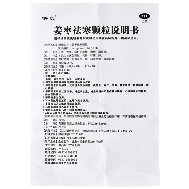 快炙姜枣祛寒颗粒15克*9袋