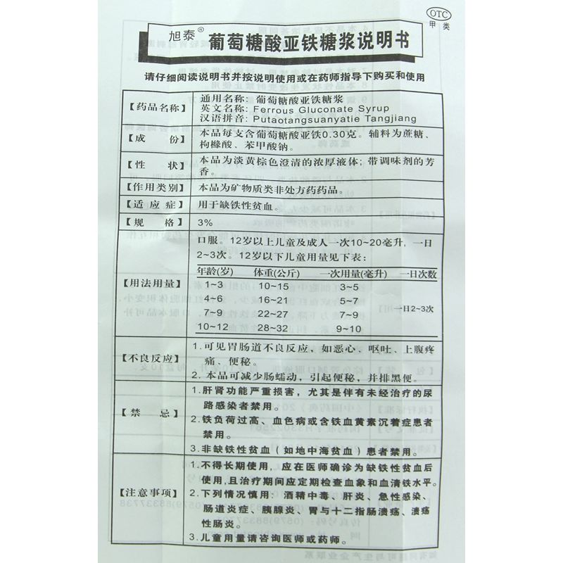 天一堂 旭泰 葡萄糖酸亚铁糖浆 10ml*10支 于缺铁性贫血